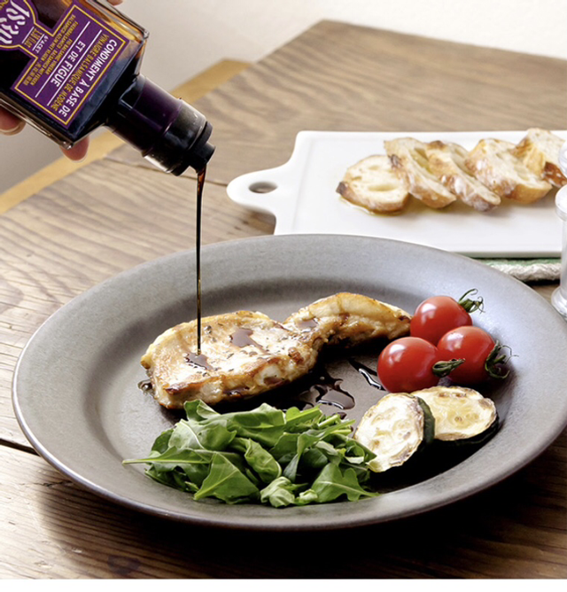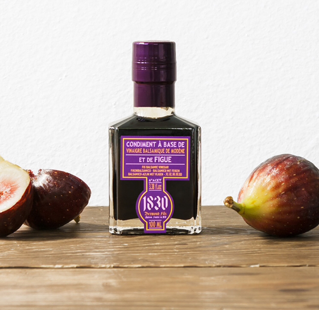 Notre nouvelle recette de condiment balsamique à la figue est composée uniquement de moût de raisin de Modène, de concentré de figue et d’extrait naturel de figue.
