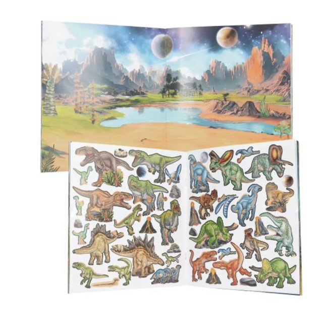 Des autocollants galactiquement cool de Dino World : 20 pages de fond illustrées avec des motifs inspirés de l'espace et de l'ère des dinosaures et 3 doubles pages d'autocollants assortis.