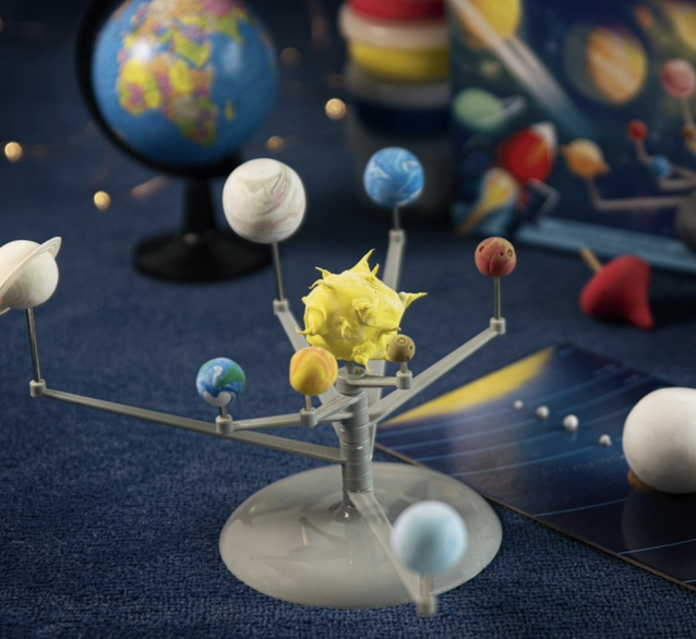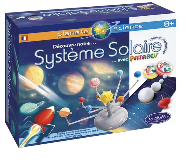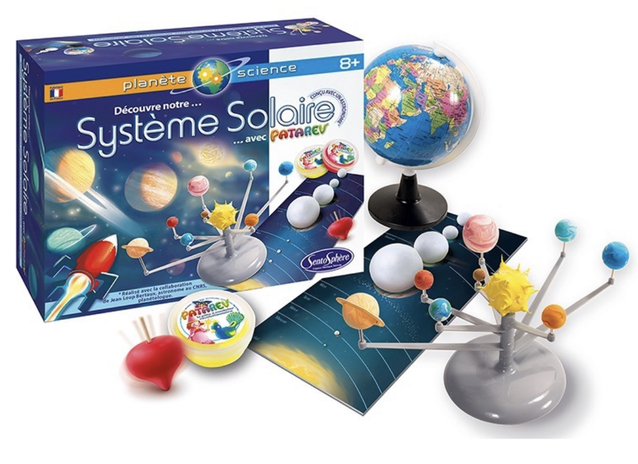 Découvre notre Système Solaire avec 5 expériences fascinantes. Grâce à la Patarev, une pâte à modeler créative, il sera possible de faire une mise à l’échelle des planètes, tout en découvrant leurs particularités, avant de construire un mini Système Solaire et d’observer le principe des éclipses. La notice montre également comment fabriquer une toupie qui, une fois lancée, aidera à comprendre et illustrer les mouvements de la terre, à l’origine des jours et des saisons.