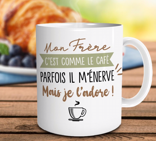 Le mug, un classique des cadeaux à offrir à quelqu'un, on en trouve pour tout le monde et pour tous les goûts ! C'est ce que nous vous proposons avec ce mug cadeau - "MON FRERERE C'EST COMME LE CAFE"