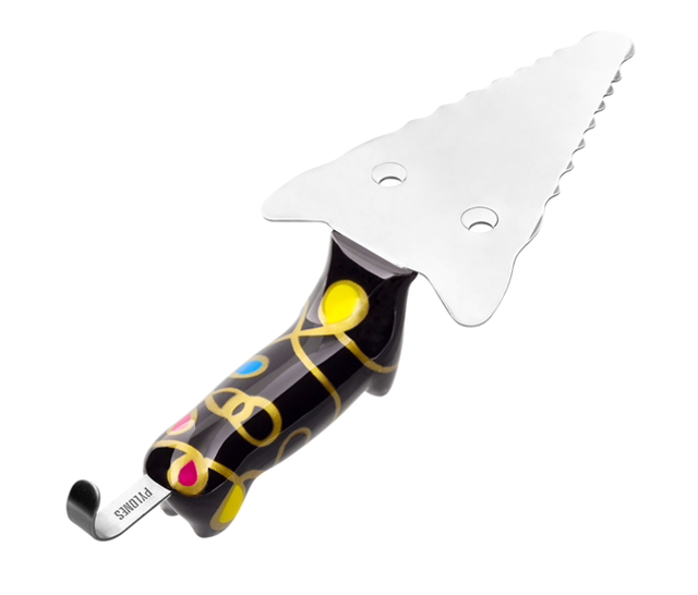 Je suis une pelle à tarte mais j'aime également les gâteaux, les quiches, les pizzas et tout ce qui est fait de pâte. Avec mes petites dents je découpe à la perfection vos parts de gâteau.